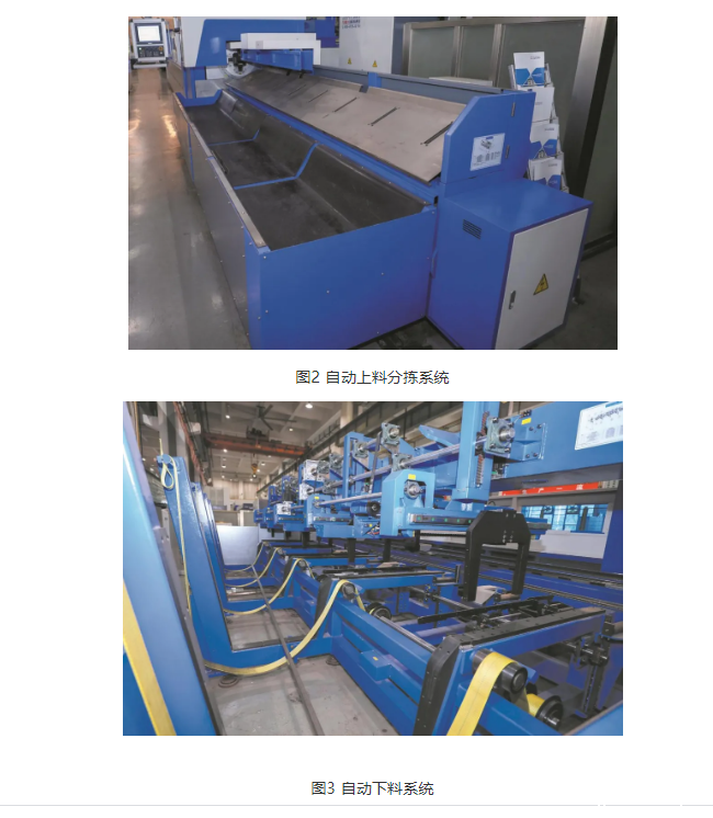 第四代全自动激光切管机相比于第三代,定位速度由100m/min提升至120m/min。X、Y、Z直线轴和A、B旋转轴均采用欧洲进口大扭矩伺服电机,高精度、高转速、大扭矩、大惯量、性能稳定耐用,保证了整机的高速度及加速性;拥有国家专利的全自动上下料系统(图2、图3),上料零失误、稳定性好、整体加工效率高。
